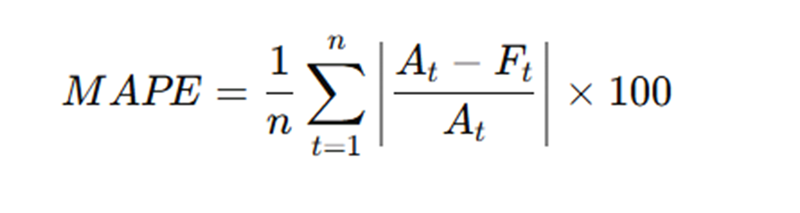 En pocas palabras, el MAPE mide el porcentaje promedio de error entre lo pronosticado y lo real, mostrando qué tan confiable es un modelo.